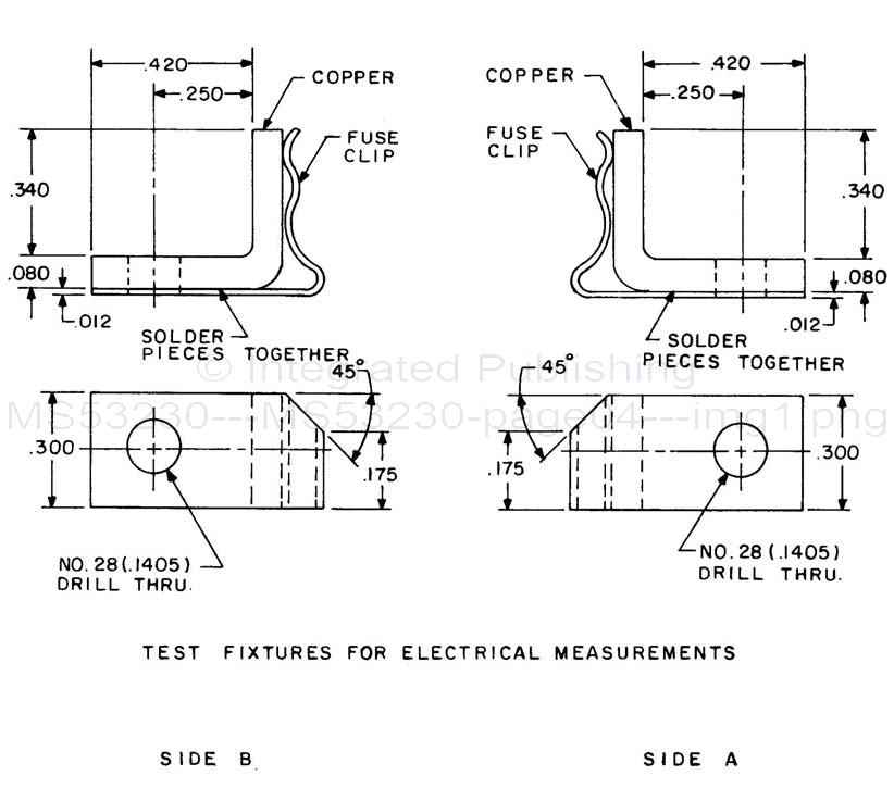 1. The test fixture in the diagram following shall be used for electrical measurements. Inductance values are effective inductance as indicated on a HP260A, HP190A or equivalent Q meter, when tested in the test fixture. Add 5 percent to Q reading to account for loss of Q in the test jig.